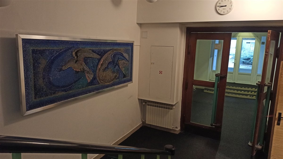 Původně byly mozaiky podsvícené zářivkou. Proto jsme za mozaiky umístili LED panely, aby se i na chodbě mohly krásně rozzářit.